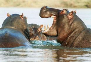 你看,当河马用嘴巴咬住西瓜时,它会用牙齿将西瓜分成几块,然后一块一块地吃下去。这种吃瓜技巧,真是让人叹为观止。